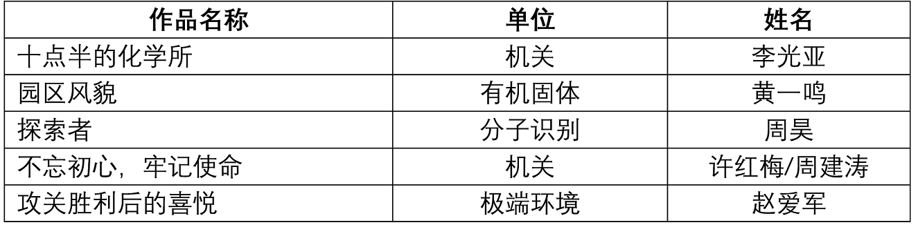 2021年是中国共产党成立100周年,化学所也迎来了65岁生日,为抒发广大师生爱党爱国爱所的情怀,所工会开展了“春华秋实科苑风采”摄影比赛。