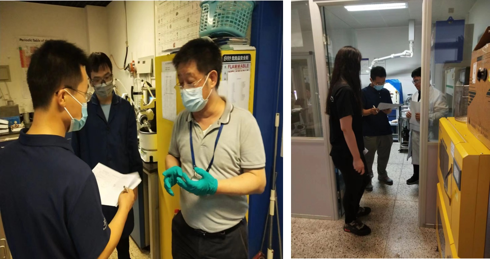 随后,参会人员分成7个小组分别对各实验室开展认真细致的安全检查。检查过程中,检查人员重点提醒实验人员要提高安全意识,做好暑期实验室的安全工作,并就检查中发现的问题及时与实验室人员进行沟通,提出整改意见和要求。
