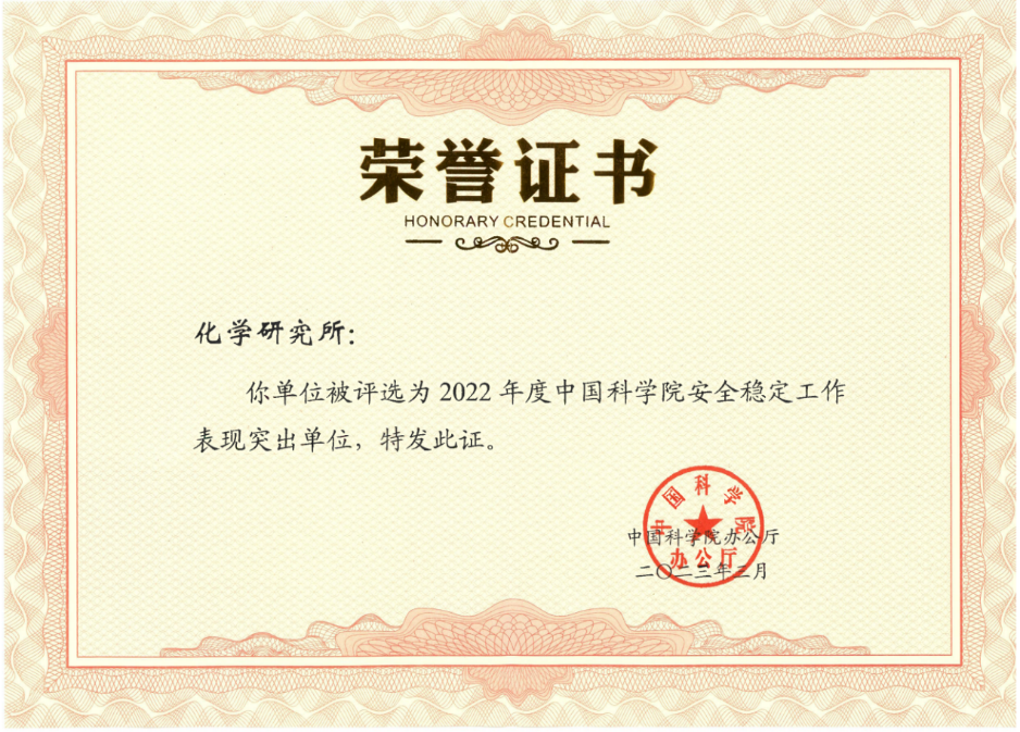 化学所荣获2022年度中国科学院安全稳定工作表现突出单位