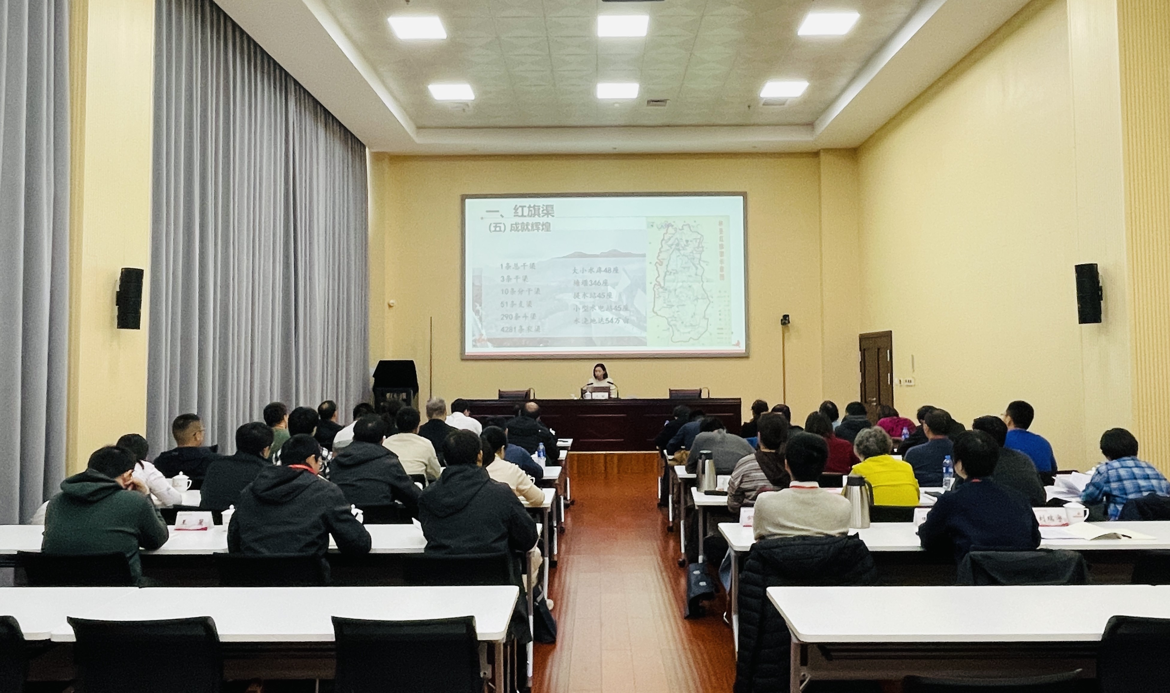 18日下午,为持续推动学习贯彻党的创新理论入心见行,进一步坚定理想信念,活动特别邀请红旗渠干部学院培训部冯琳主任围绕《红旗渠精神及其当代启示》作专题教学,通过引入大量数据和感人事例,从红旗渠、红旗渠精神以及当代启示三个方面展开讲解,用“天河”“人工”“特殊时期”“始于苦难”“成就辉煌”五个特点生动形象地描述了红旗渠的修建历史,并启示当代党员干部要坚定理想信念、坚持党的领导、坚持人民至上,做到学思用贯通、知信行合一。