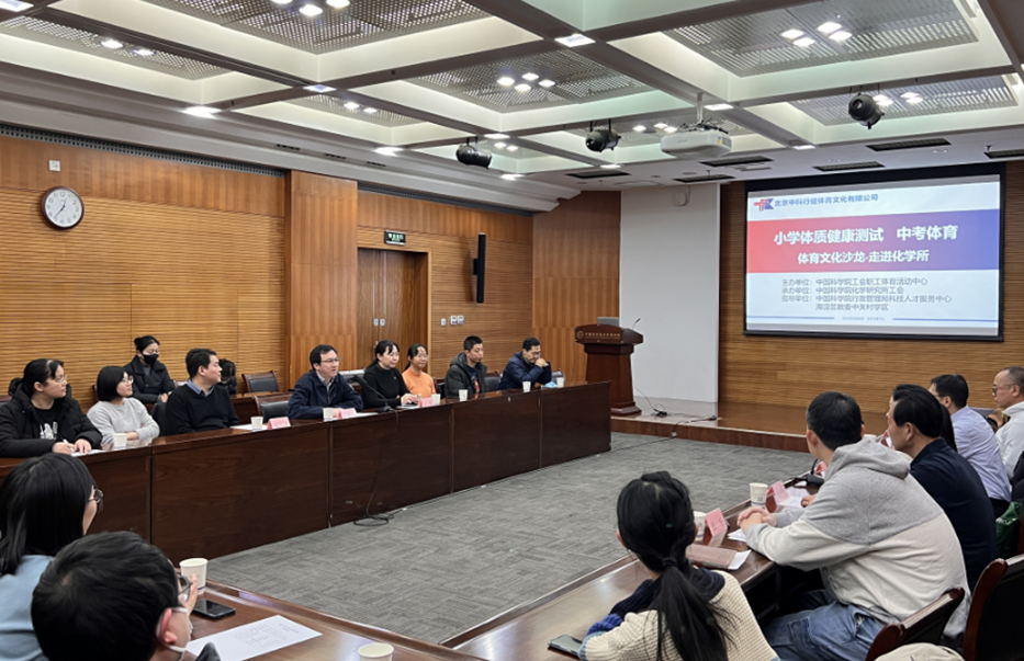 为满足科研人员子女在运动健康及中小学体育训练和考试方面的需求,在海淀区教委中关村学区、中国科学院行政管理局科技人才服务中心的支持下,1月26日,所工会与北京中科行健体育文化有限公司(中国科学院工会职工体育活动中心)联合举办“体育文化沙龙-走进化学所”活动。化学所纪委书记冯国星、综合处处长衣冰、工会常务副主席李静,行管局科技人才服务中心主任何有华、相关中小学体育教师,以及我所40余名职工参加活动。