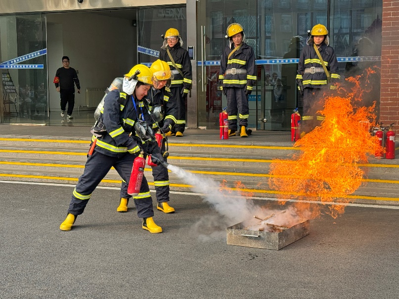 下午2时,随着消防广播的响起,5号楼1-10层和地下空间B1-B2层师生在疏散引导员的指挥下,井然有序地按照疏散路线快速撤离大楼。约3分钟后,参与师生全部疏散至楼外空旷地带。随后,微型消防站队员演示灭火器的使用方法。