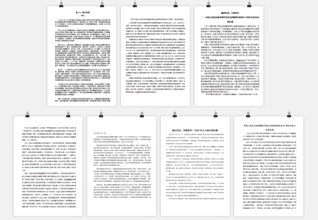 天安门阅兵是国家重大纪念日阅兵的制度化安排,是纪念活动的重要组成,具有重大的政治意义和深远的历史意义。铭记来时的路,才能底气十足地走向未来。直播结束后大家仍激动不已感慨万千,很多青年党员还通过撰写心得体会和朋友圈抒发情怀。大家纷纷表示,站在新的历史起点上,要更加自觉地继承和弘扬伟大抗战精神,把“当年靠什么赢”的制胜密码转化为“今天要怎么做”的行动坐标,履职尽责、担当作为,为实现中华民族伟大复兴贡献智慧和力量。